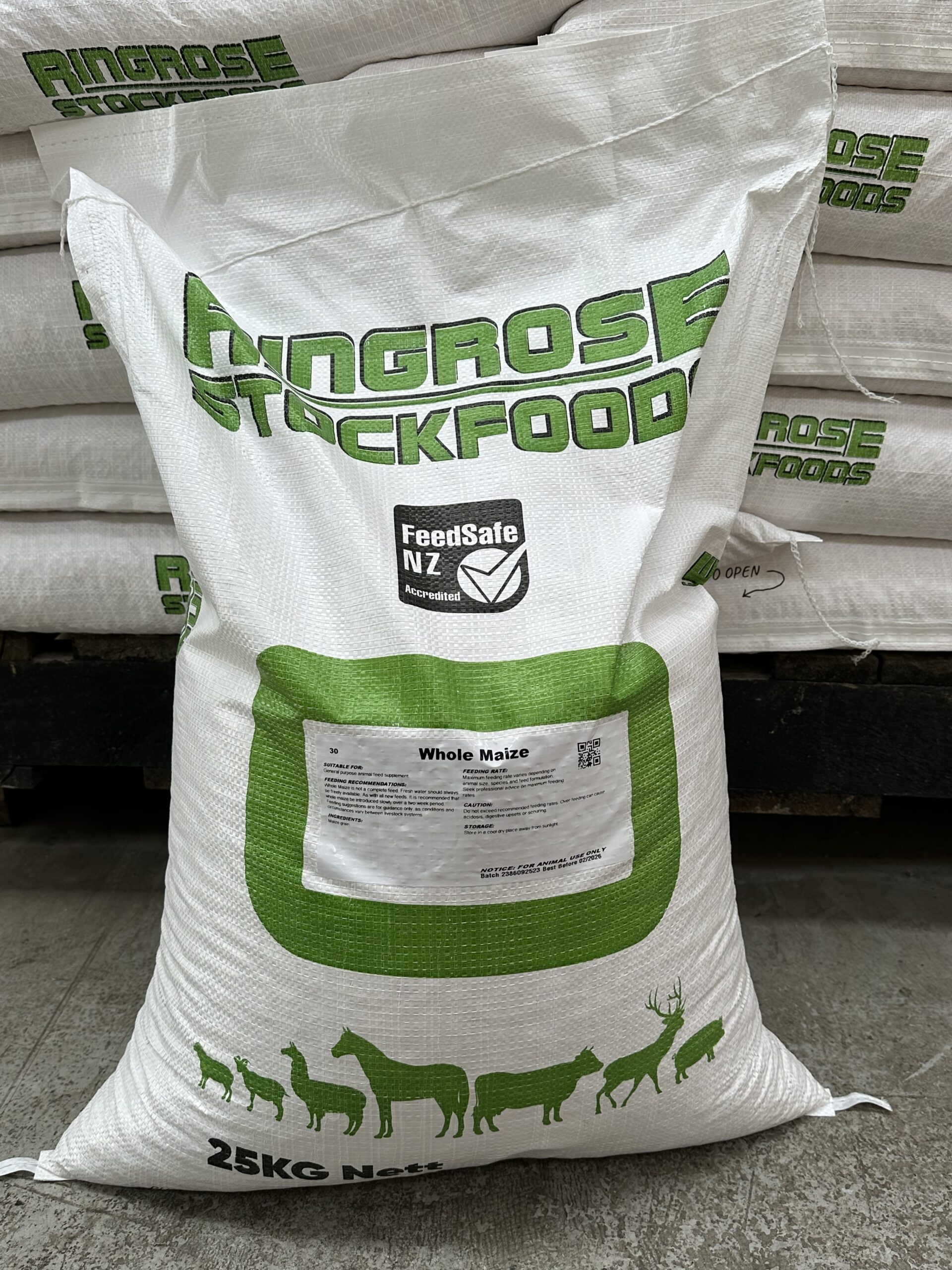 Maize whole is an energy-dense feed sourced from locally grown New Zealand farms. Suitable to be fed to: Sheep, Cattle, Deer, Goats, Alpacas, Pigs and Poultry